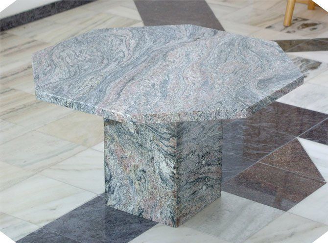Wir bieten Tische in vielen verschiedenen Formen, Größen und Steinmaterialien an. Nicht nur die Bearbeitung der Flächen und Kanten, sondern auch die Form und die Größe können Sie frei wählen.